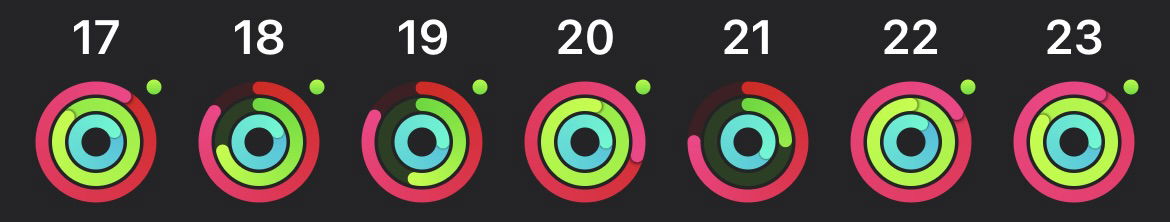 I didn’t close my rings every day so in that sense it wasn’t exactly a banner week. But I did manage to get in almost 10 hours of activity, 73,147 steps, two huge pickleball workouts, and I burned 8,074 calories. And hey I’m down more than 30 pounds since March, so I’m gonna say it was a good week.